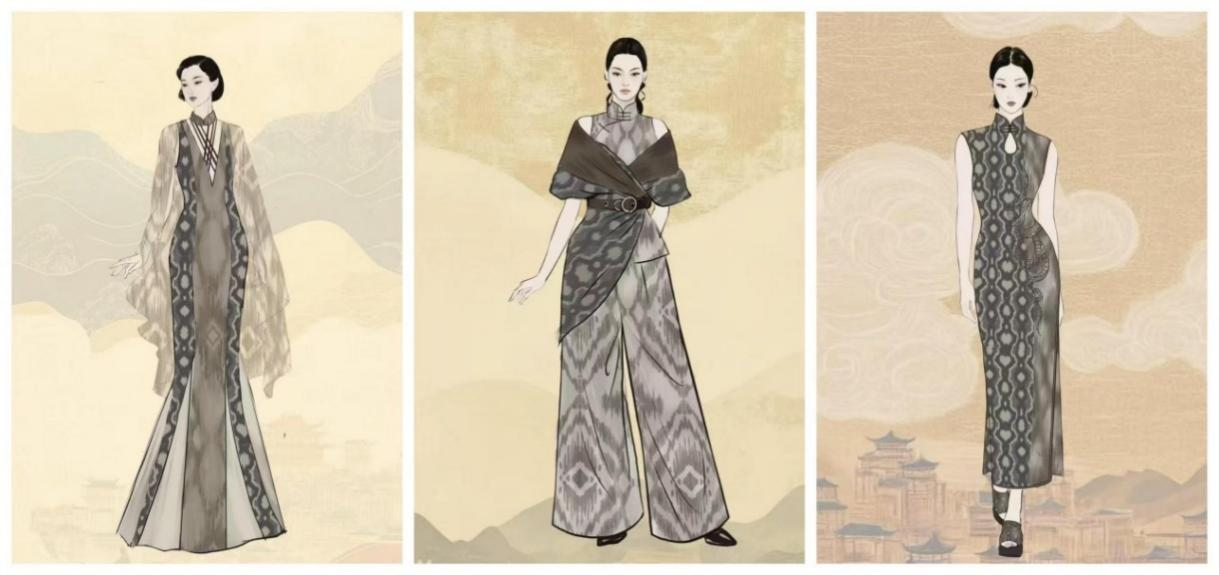 赛事吸引了全国118所高校和28位独立设计师的踊跃参与,共收到1128件参赛作品。经过两轮激烈的评选,最终有39位设计师的40组作品进入决赛,120件原创设计集中展现了新疆非遗艾德莱斯技艺与海派旗袍文化及现代设计理念的深度融合。在周双老师的悉心指导下,陈霄月同学凭借其扎实的专业知识和独特的设计理念,将课堂所学化为实践之力,让设计理念在布料上生根发芽,最终在上海时装周的舞台上华丽绽放,这一成绩不仅是专业教学成果的有力见证,更是我校学子创新精神的最好诠释!