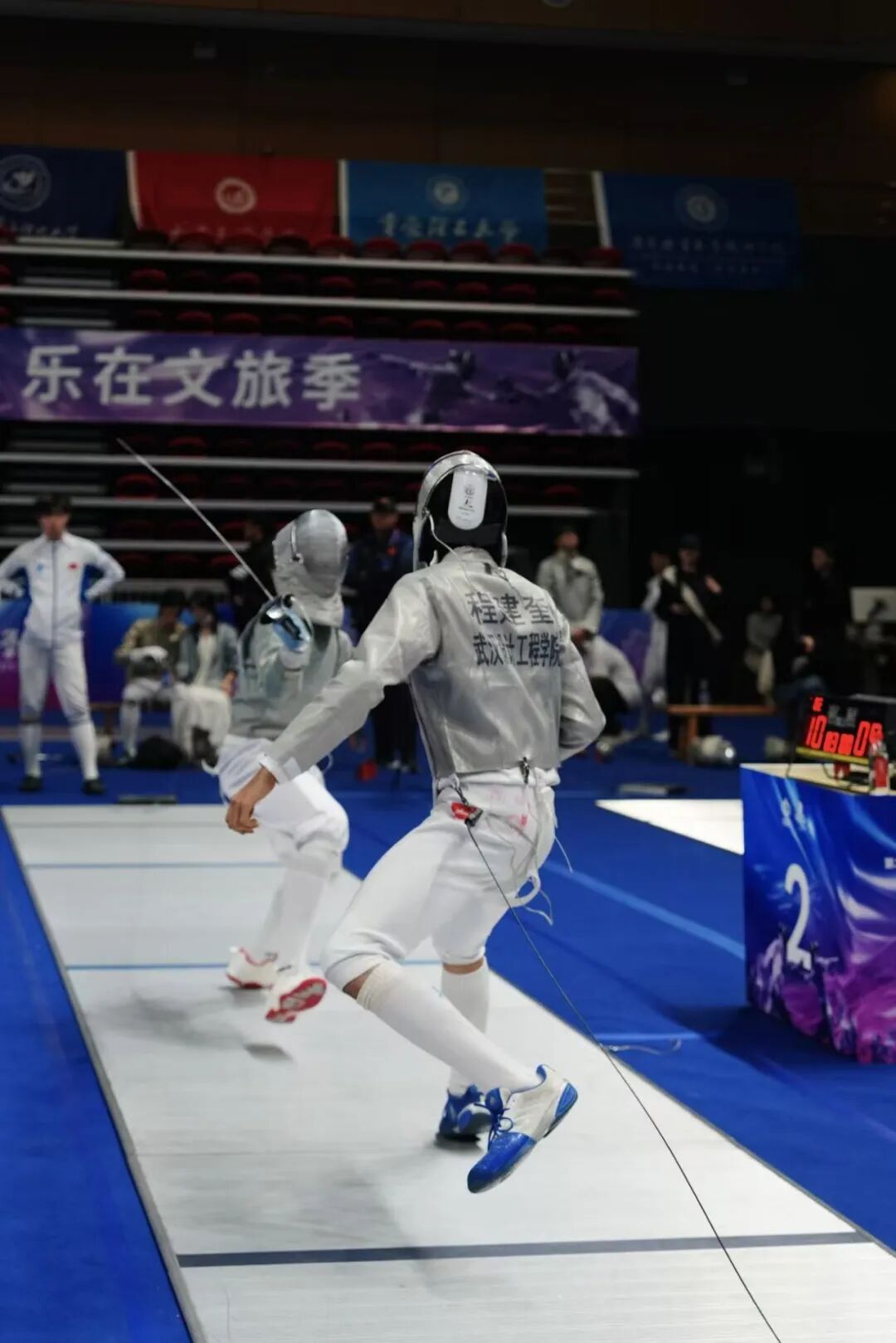 “剑道如人生,每一次出剑都是与自我的较量。”赛后接受采访时,程建奎依旧难掩对击剑运动的热忱。作为首次登上全国大赛舞台的武设学子,他面对的不仅是各地高校的击剑好手,更在关键赛程中遭遇上届赛事亚军。回忆起那场惊心动魄的对决,他眼神明亮:“比赛从平局僵持到加时赛,每一个回合都考验着专注力和决断力。对手的实力非常强劲,最后时刻的精彩博弈,让我学到了很多顶尖选手的赛场智慧。”尽管最终以一分之差止步八强,但这场高强度的较量,成为他成长路上最珍贵的历练,也展现了新生代剑客不畏强手、奋勇争先的精神风貌。
