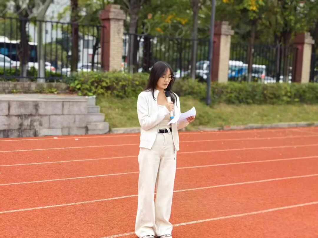 最后,由时尚设计学院学生代表彭心阳上台发表主题为《以青春之我,筑时代之基》的国旗下讲话。清晨国旗升起,青春的我们既是追梦者,也是行动者。励志从不是口号,而是课堂提问、科研较真、实习担当的主动选择。大学是试错战场,挫败是成长锤炼。让我们以书拓界、以思聚能、以行践诺,以青春之我筑时代之基,让奋斗照亮大学时光!彭心阳同学的国旗下讲话,指引着我们拒绝躺平,主动奋斗、坚韧试错绽放青春力量