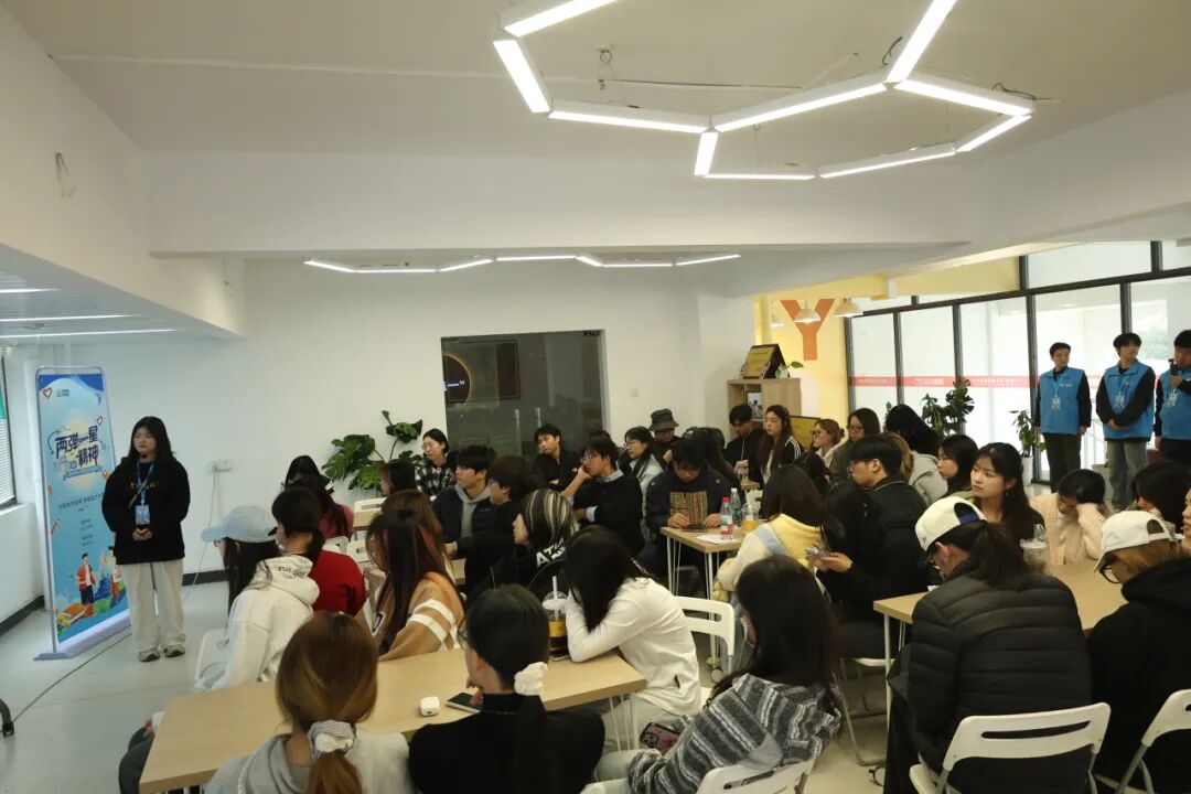 当“两弹一星”精神遇见时尚设计,会碰撞出怎样的创意火花?2025年11月11日,武汉设计工程学院马克思主义学院初心宣讲团校内巡讲第五站在时尚设计学院温情开讲。在一站式社区服务中心内,科技感与创意感交织,暖意与信念相融,主讲人胡圆圆为同学们带来了一场别开生面的“两弹一星”精神主题宣讲,并通过主题文化衫DIY活动,让红色精神在创意设计中焕发新生。