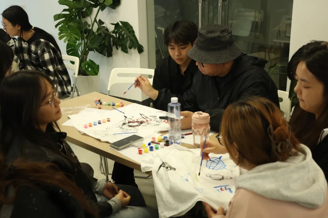 宣讲结束后,备受期待的“两弹一星”主题文化衫创意实践环节正式开启。同学们以2-3人为一组,领取定制颜料、空白T恤等物料,将心中感悟转化为可视化的设计语言。