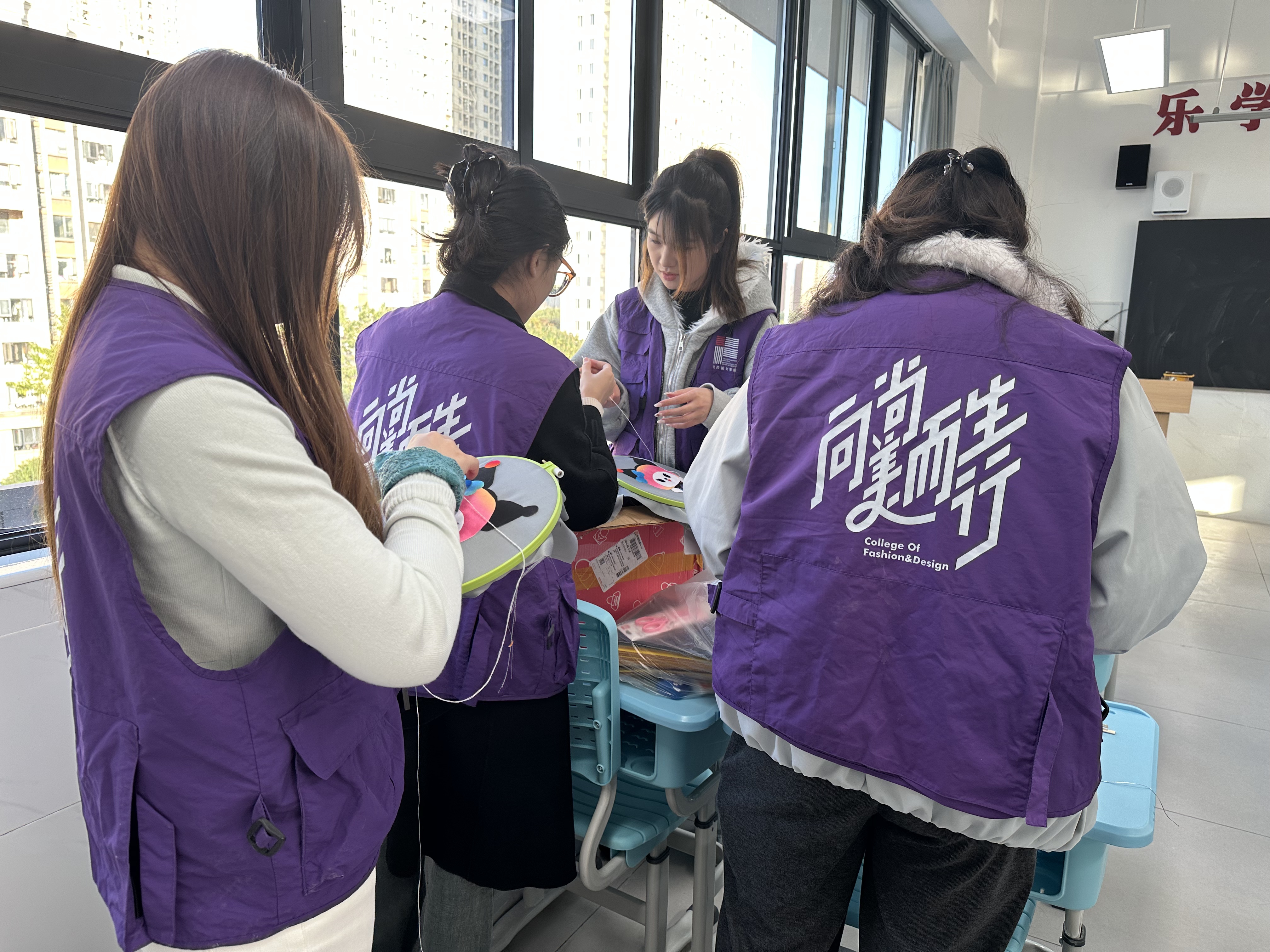阳新布贴作为国家级非物质文化遗产之一,起源于湖北省阳新县,以 “色彩浓烈、构图饱满、寓意吉祥” 为特色,凭借剪刀、针线与各色布料的巧妙结合,将民间故事、自然景象等元素融入创作,是荆楚文化中极具代表性的手工艺术瑰宝。为了让小学生们更好地理解这门传统技艺,时尚设计学院的师生志愿团队提前做足准备,依托本学院阳新布贴非遗工作室的专业基础,设计制作符合小学生认知的课程。不仅精心制作了阳新布贴历史渊源、经典作品的图文视频,还准备了剪刀、彩纸、胶水、针线等全套实践材料,为课堂的顺利开展奠定了坚实基础。