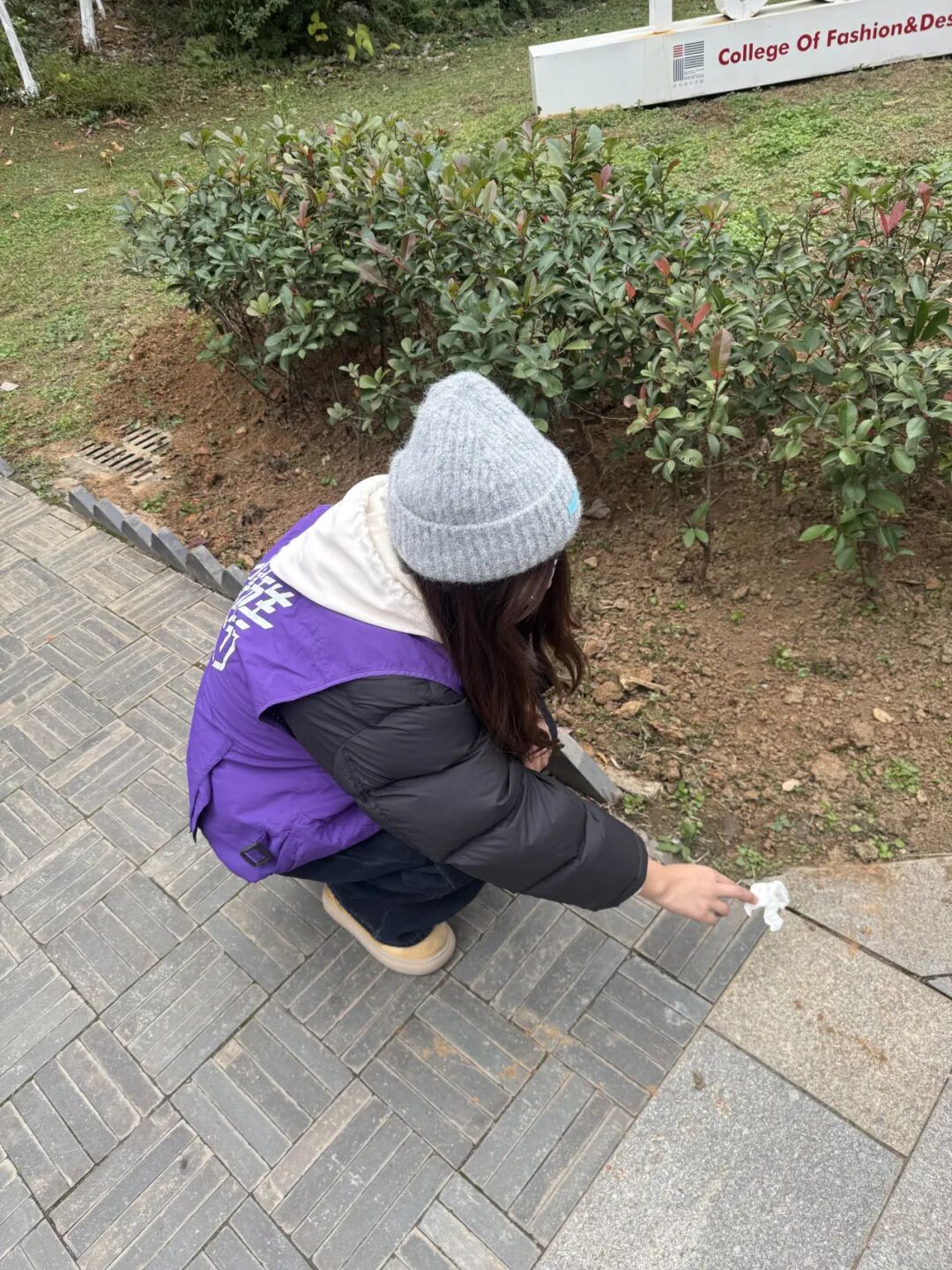 宣讲会后,一群“设计师”志愿者的身影出现在校园的角落。他们拿着垃圾袋和工具,低头俯身,仔细清理着草坪、步道和公共空间的杂物。这不是一次简单的劳动,而是一场“发现美、修复美”的实践。 “整洁的环境本身就是最基础、最重要的公共设计。”参与活动的祁紫嫣同学说,“我们‘设计’的不只是作品,还有我们共同生活的空间。”