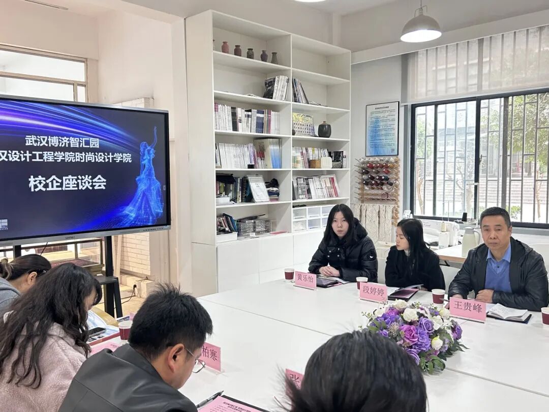 参观结束后,双方于鹤鸣1029举行了校企座谈会。座谈会由时尚设计学院陈柏寒副书记主持,她首先对武汉博济智汇园领导团队的到来表示热烈欢迎,并简要介绍了学院的基本情况、专业设置、人才培养模式以及近年来取得的教学成果。