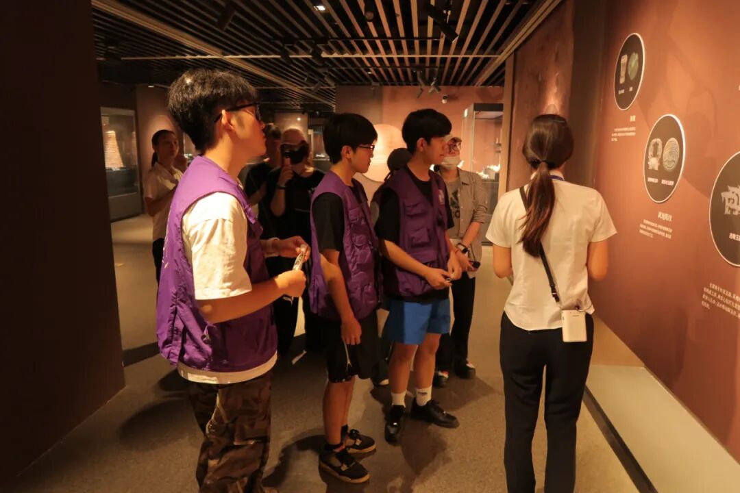 在三层非遗展区,讲解员详细介绍了天门皮影戏、天门糖塑等非物质文化遗产的历史传承与艺术特色。实践队员们认真聆听讲解,记录非遗技艺的核心特点与文化内涵,为后续开展美育教学积累了丰富的素材,也深化了对荆楚文化的理解与认同。