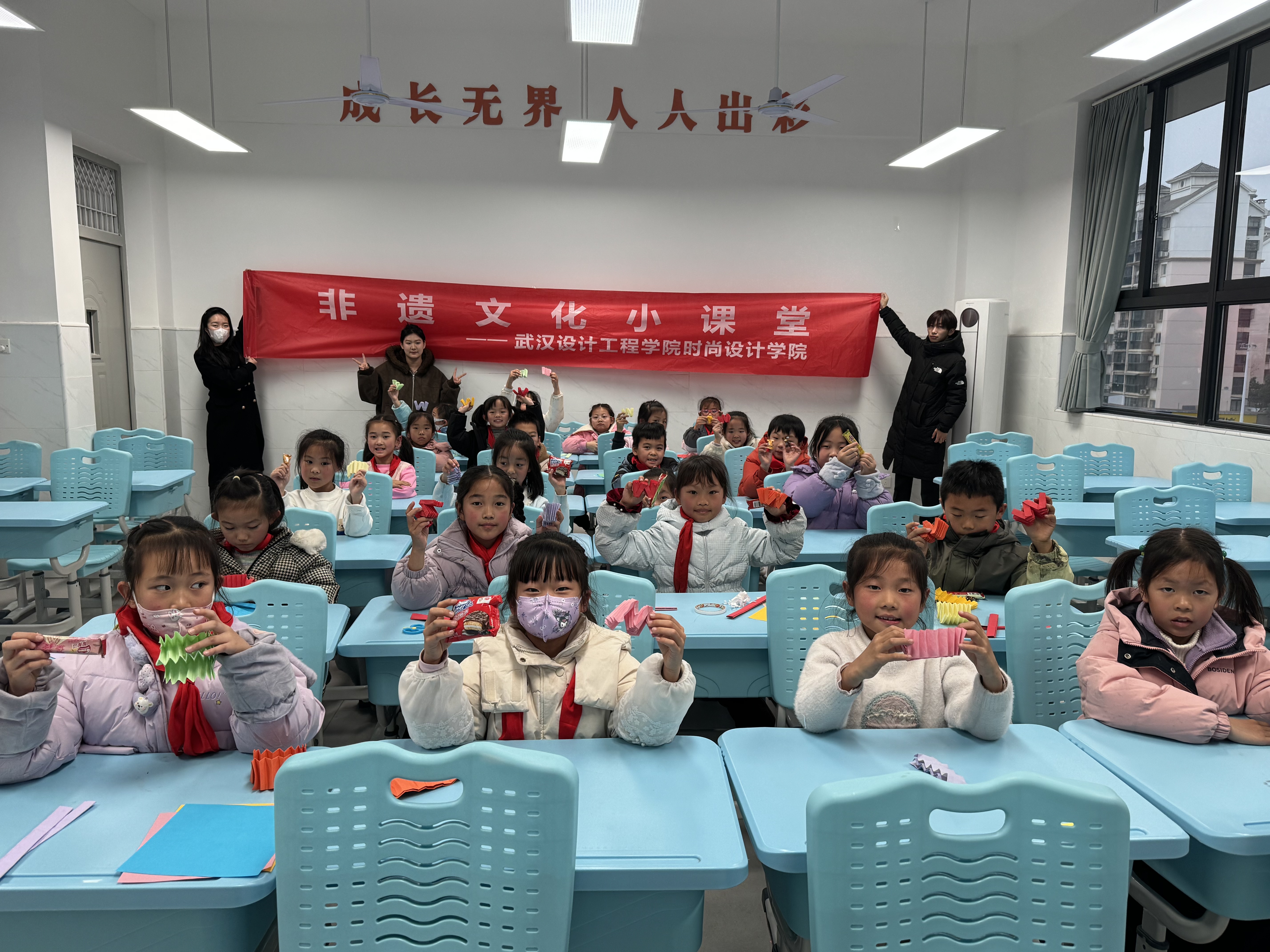 为传承中华优秀传统文化,让青少年近距离感受非遗工艺的独特魅力,12月24日,“尚美青年”志愿服务队成员们走进武汉市洪山实验小学,开展了一场以“非遗艺术纸翻花——指尖上的纺织智慧”为主题的工艺体验小课堂。